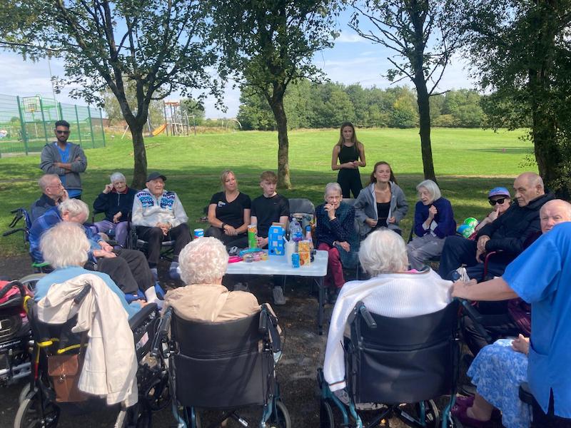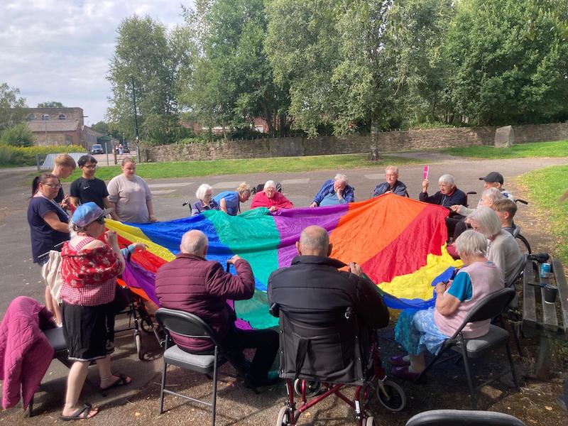 We met up with Oaklands residents again on the recreation ground at Harle Syke - 16 residents & 6 Change Makers came along so it was a busy afternoon! We had initially planned to go on a walk around the woodlands together & use our Youth & Community Van as a base for refreshments, although the break in & burglary to the van the weekend preceding meant we had to think of a plan B. We reached out to Kiddy Kids, the children's play venue opposite Queen St Mill, and they kindly offered us a discount on refreshments so we were able to buy some ice creams & hot drinks which we all enjoyed together in the sunshine. Some Oaklands residents enjoyed a short walk accompanied by our Change Makers, then we played parachute together & were treated to some songs by Oaklands resident Jim. Several residents thanked us for a lovely afternoon & it was good to have the time to chat & get to know each other a little better, exactly what this Connected Generations project is all about.